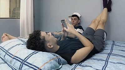Curly-haired Angelus may seem heaven-sent to ass-hungry rawfucker top Raul Pinedo, but this sexy little Latin bottom is no angel. From his pierced nose ring to his penchant for cruising for online hookups, he's got a bit of the devil in him. They start out hanging around on a bed, with Raul luring Angelus away from sex apps on his mobile phone with a handful of his giant uncut cock. Once he sees and feels that oversized assrammer, the phone is gone and Angelus gets busy sucking. His satisfied groans show just how much he relishes all the possibilities of that huge dick that he can put to good use.